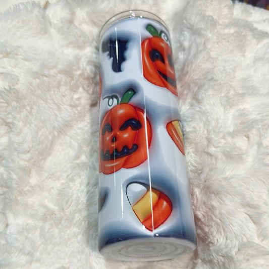Pumpkin candy corn puff tumbler (imperfect seam)